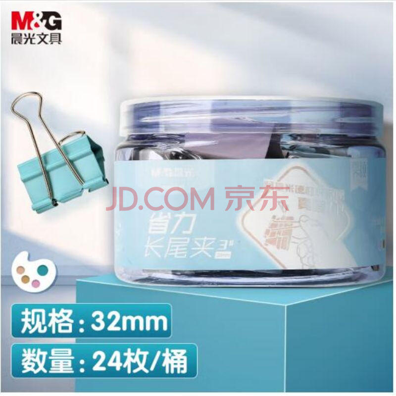 商品相册:晨光(M&G)文具ABS916Y7 32mm省力长尾夹票夹 3号彩色金属燕尾夹 霁颜系列票据夹 24个/盒 1盒装第
