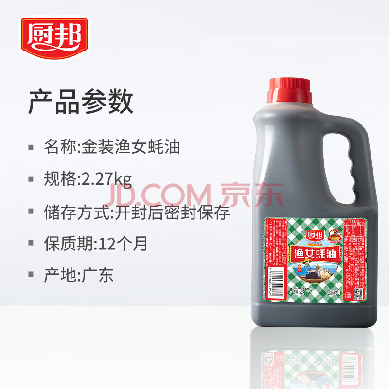 商品相册:厨邦渔女蚝油 2.27kg【0脂肪】优质蚝汁 炒蘸拌烤调料 大桶商用自营第