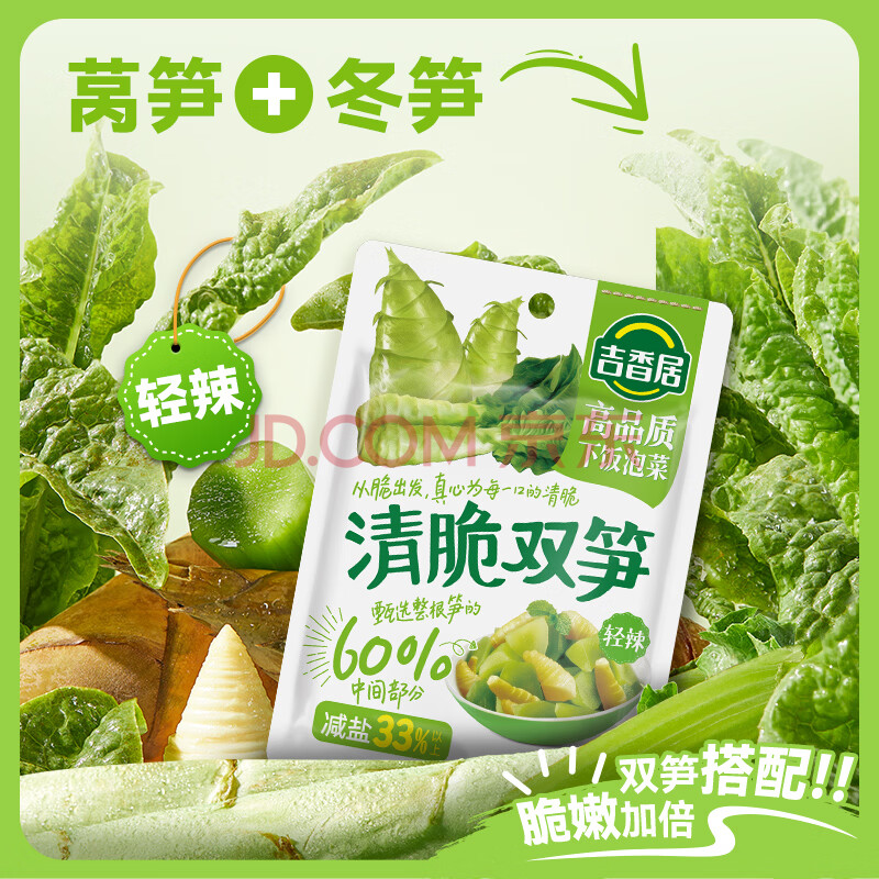 商品相册:吉香居清脆双笋 脆笋莴笋下饭菜咸菜减盐榨菜106g*3包微辣第