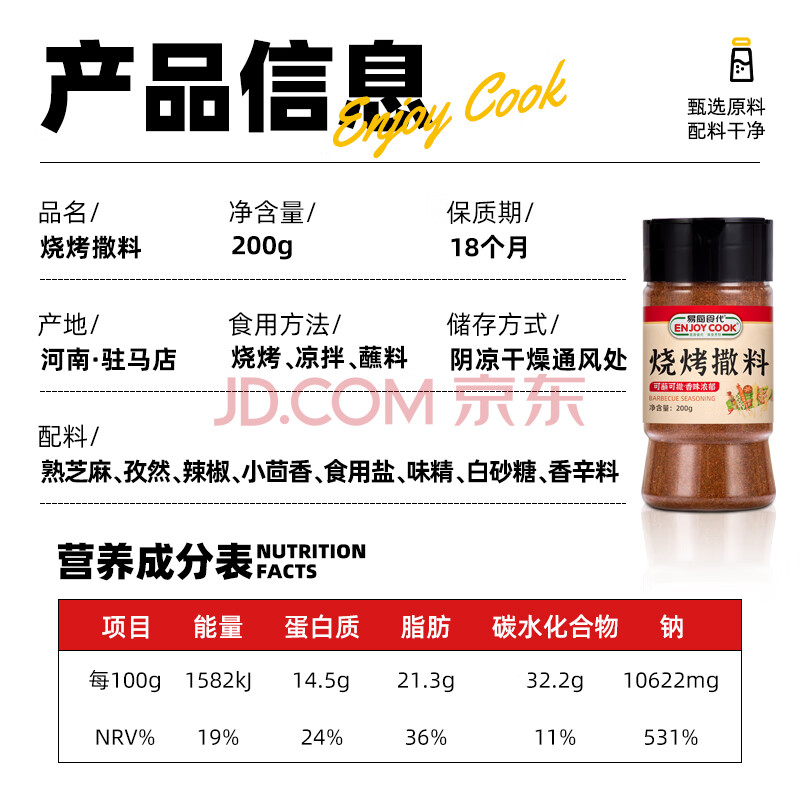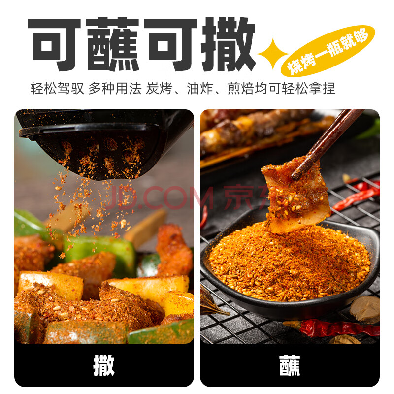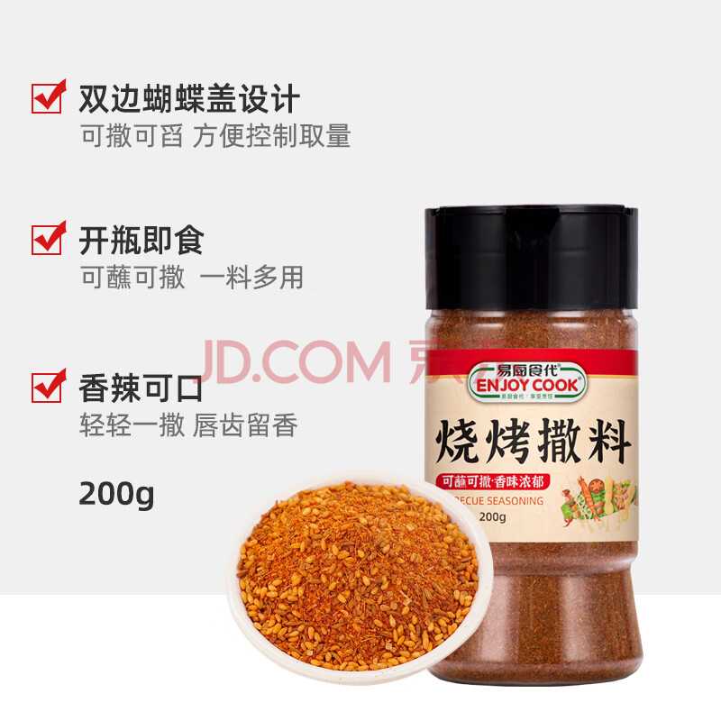 商品相册:易厨食代烧烤撒料瓶装200g 新疆风味烧烤调味料 孜然粉辣椒面烤串烤肉料第
