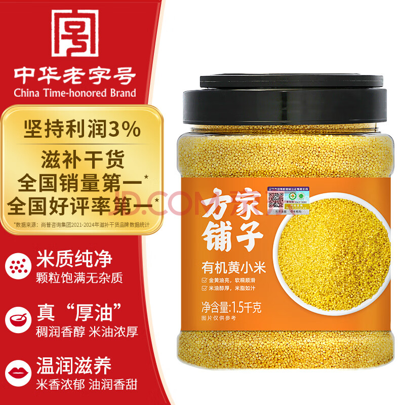 商品相册:方家铺子中华老字号 有机黄小米3斤 朝阳小米杂粮粥 新米 月子米 东北粗粮第