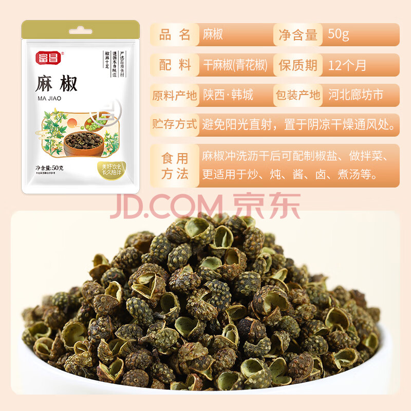 商品相册:富昌 香辛料 麻椒50g 青花椒 厨房调味 火锅调料底料 佐料炖肉料第