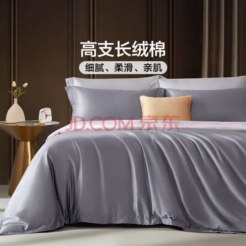 商品相册:富安娜床上四件套纯棉60s长绒棉贡缎套件全棉床单被套单双人床品203×229cm第