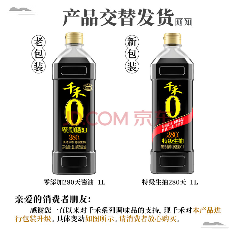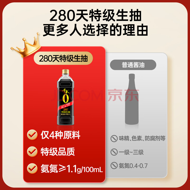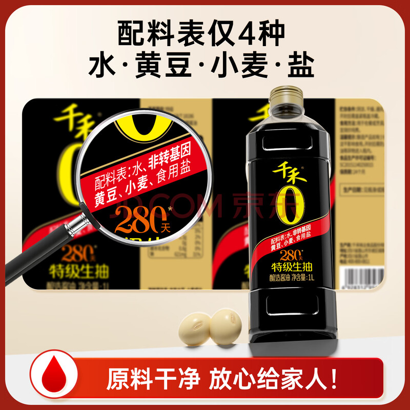 商品相册:千禾零添加 280天酱油 1L【0添加特级生抽】酿造炒菜凉拌调料第