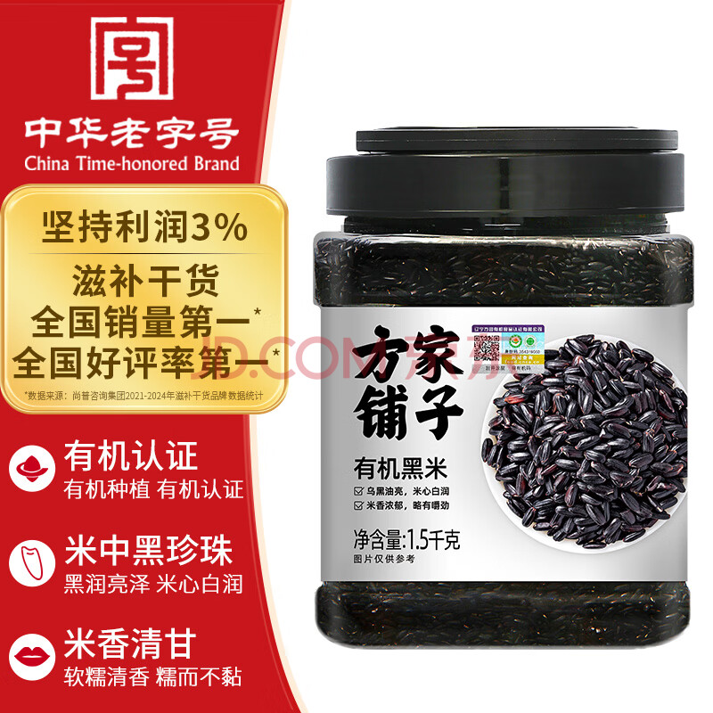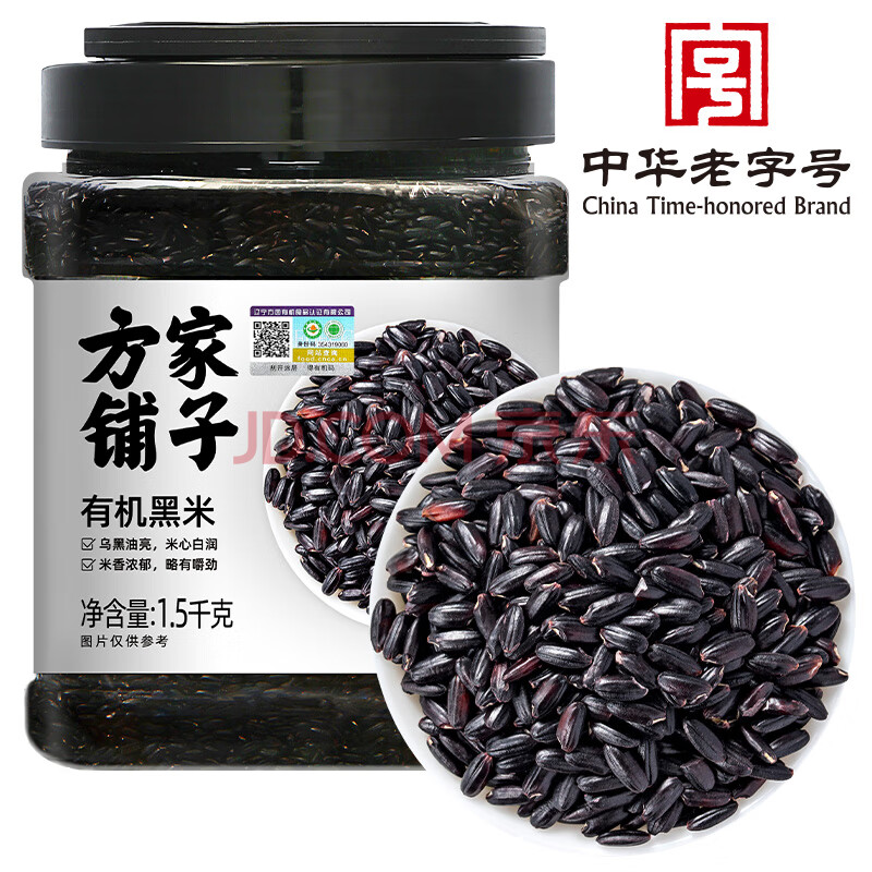 商品相册:方家铺子中华老字号 有机黑米3斤/罐 黑香米无染色五谷杂粮 东北粗粮第