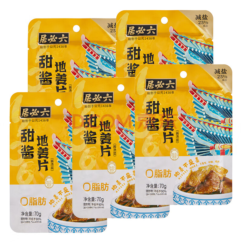 商品相册:六必居 酱菜 地姜片 喝粥下饭咸菜 70g*5 洋姜菊芋 中华老字号第