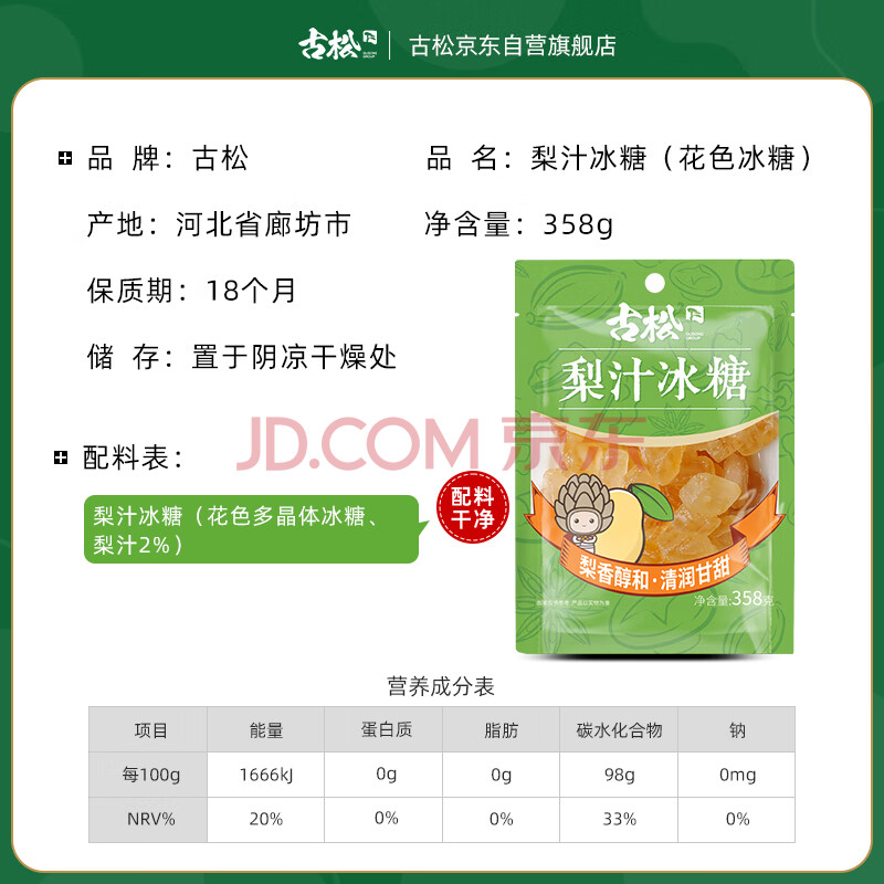 商品相册:古松 黄冰糖 梨汁冰糖358g 冲饮调味小粒糖 二十年品牌第