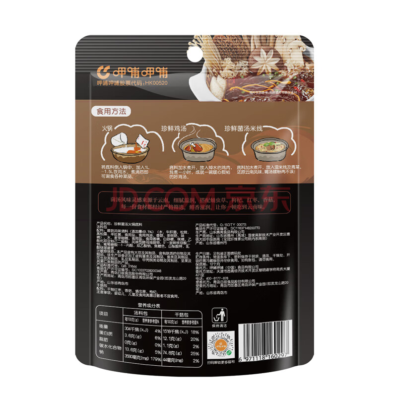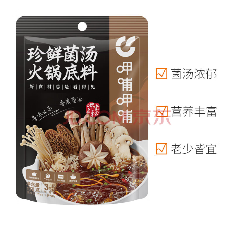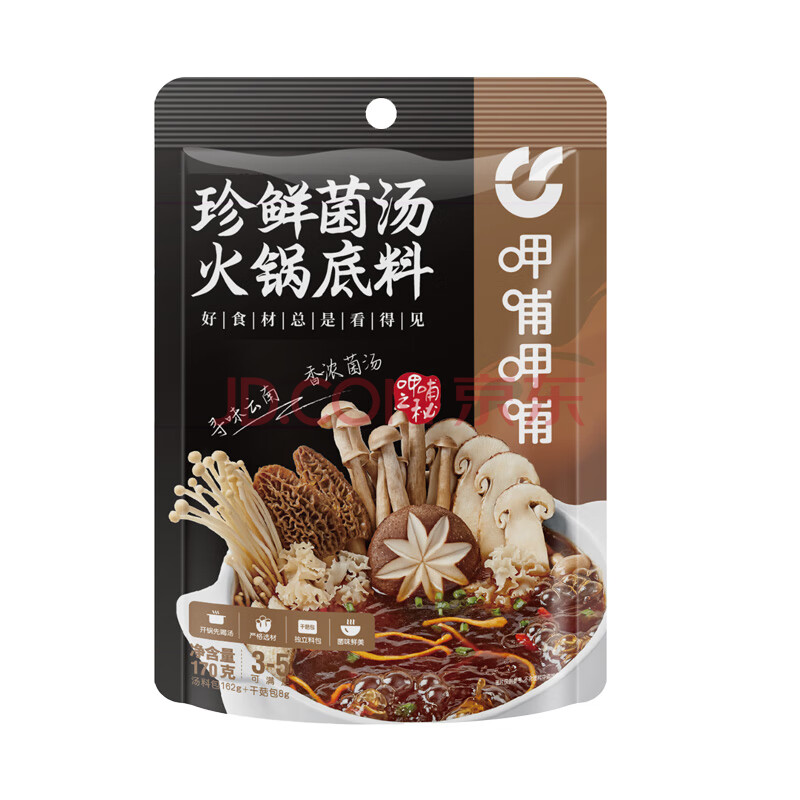商品相册:呷哺呷哺 珍鲜菌汤火锅底料 麻辣烫冒菜调味料 菌汤不辣火锅食材170g第