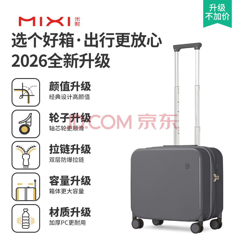 商品相册:米熙高颜值小行李箱男登机箱子拉杆箱包旅行箱男密码箱18英寸矿岩灰36第