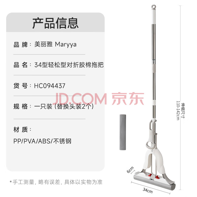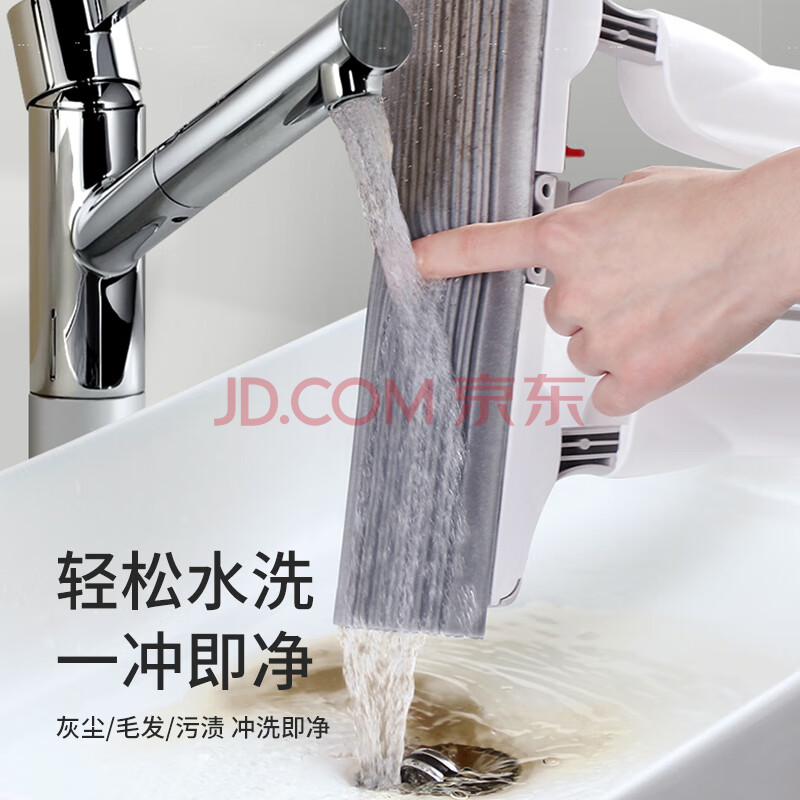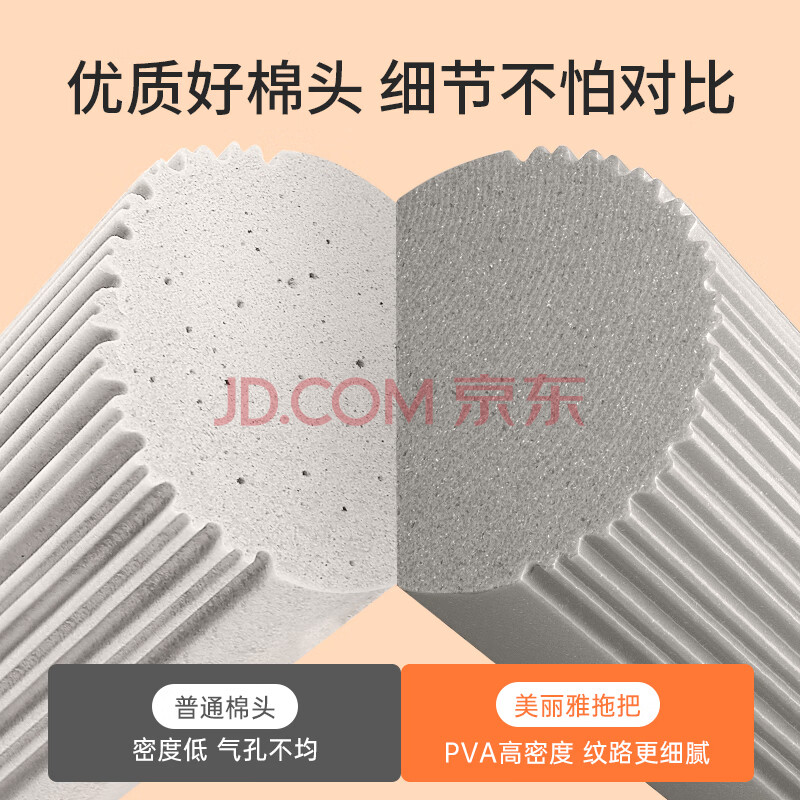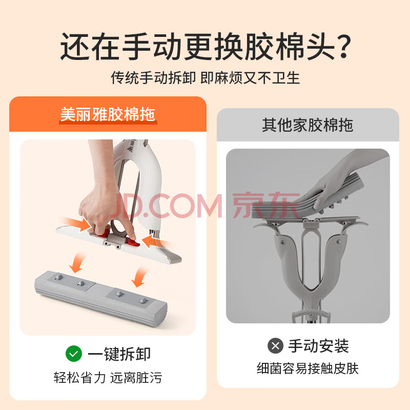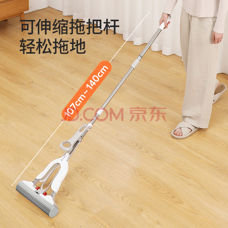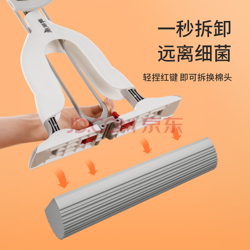 商品相册:美丽雅胶棉拖把34cm2拖头吸水海绵一键卸头免手洗一拖净干湿两用墩布第