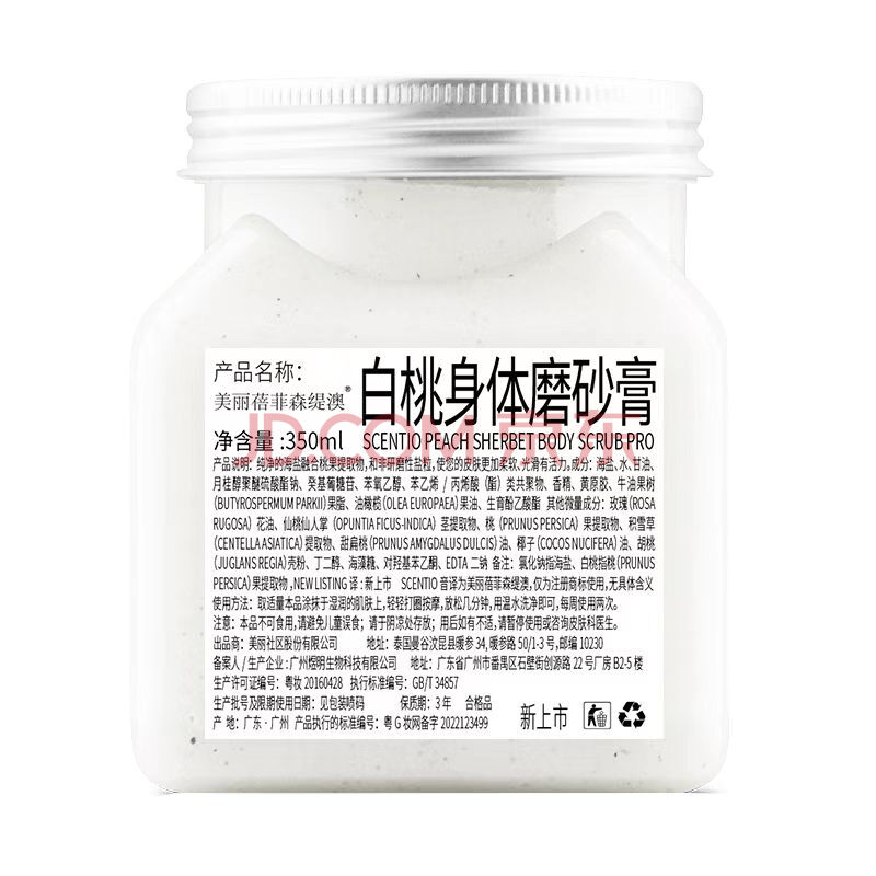 商品相册:美丽蓓菲森缇澳白桃果味海盐身体磨砂膏350ml*1罐温和去角质浴盐送礼第