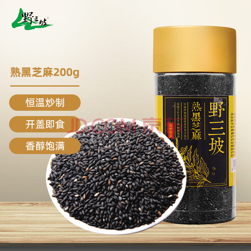 商品相册:野三坡 熟黑芝麻200g*1瓶 低温炒熟 免洗 干吃 五谷杂粮香醇饱满第1张/共4