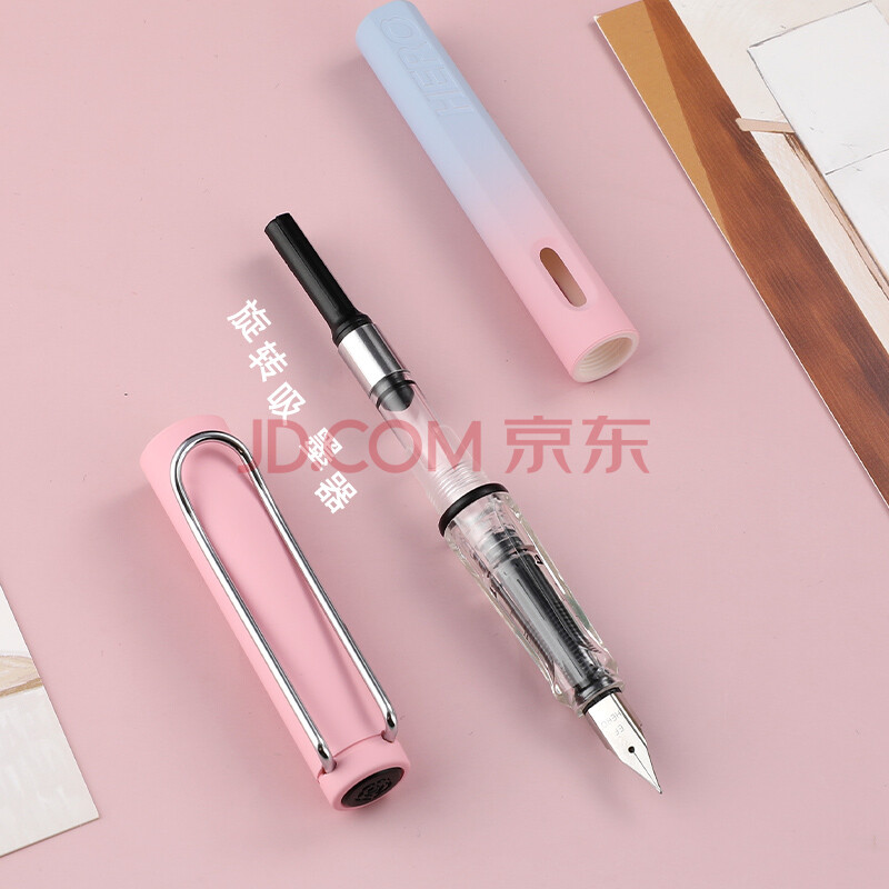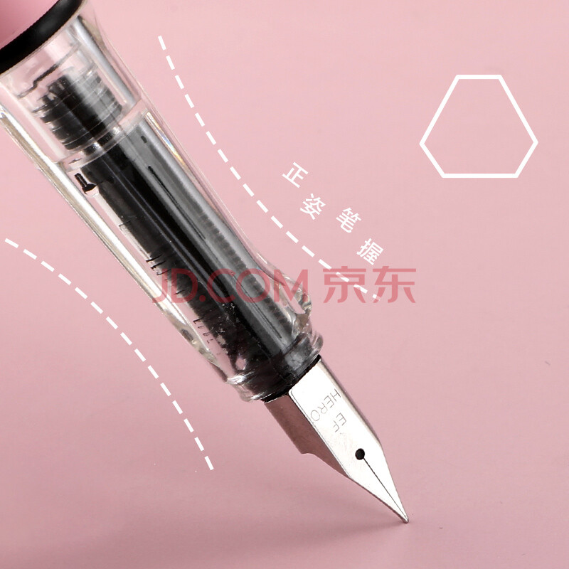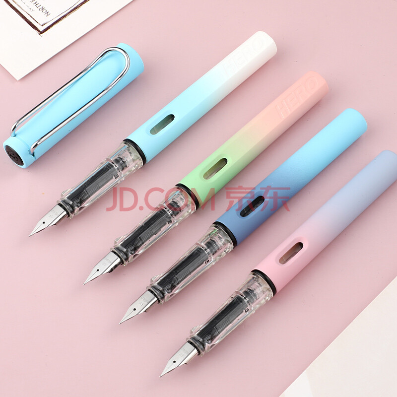 商品相册:英雄(HERO) 钢笔 359B 明尖铱金男女学生初学练字三年级正姿签字钢笔(附加6支墨囊)EF尖 渐变粉第