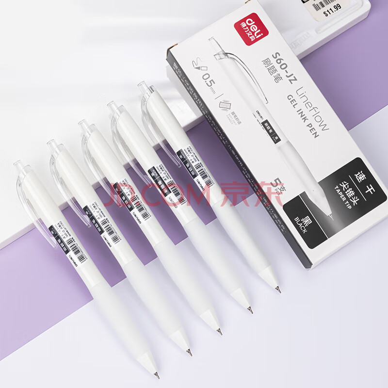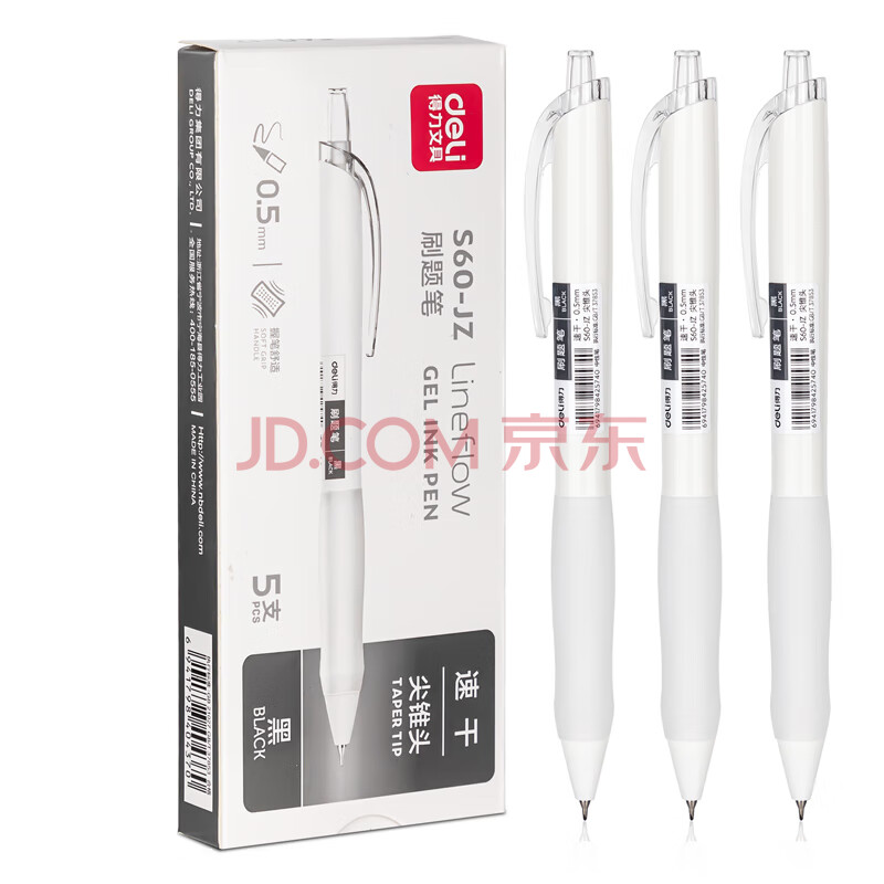 商品相册:得力(deli)刷题笔小白笔尖锥头按动黑色0.5mm中性笔速干顺滑学生考试专用笔 高颜值刷题笔5支装S60-JZ第