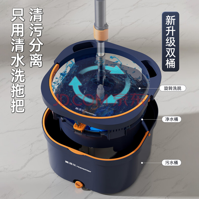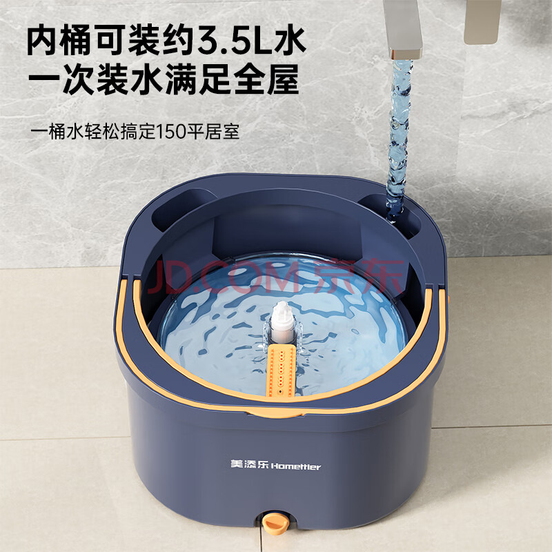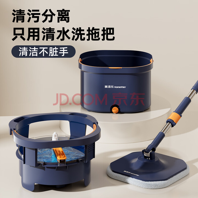 商品相册:美添乐(HoMettler)净污分离旋转拖把家用一拖净2026免手洗平板拖把3拖布带桶一套第