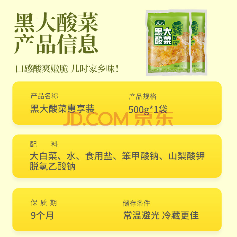 商品相册:黑大 东北酸菜 惠享装500g*2 酸白菜第