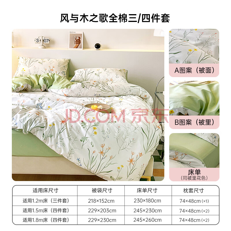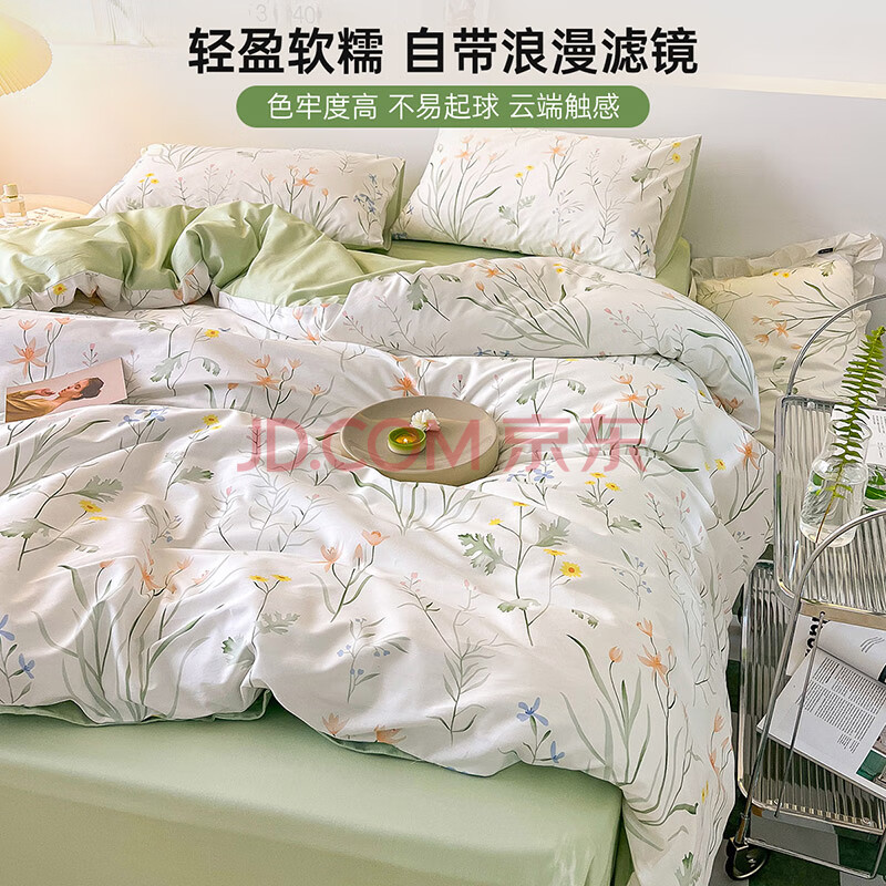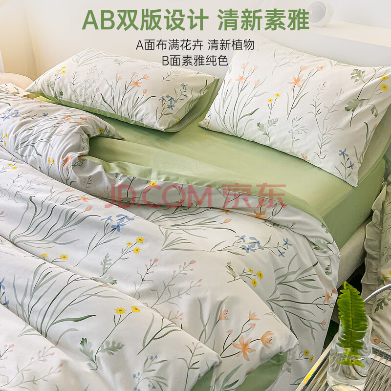 商品相册:多喜爱家纺纯棉床上四件套 全棉双人床上用品被套床单套件1.5米床203*229cm第