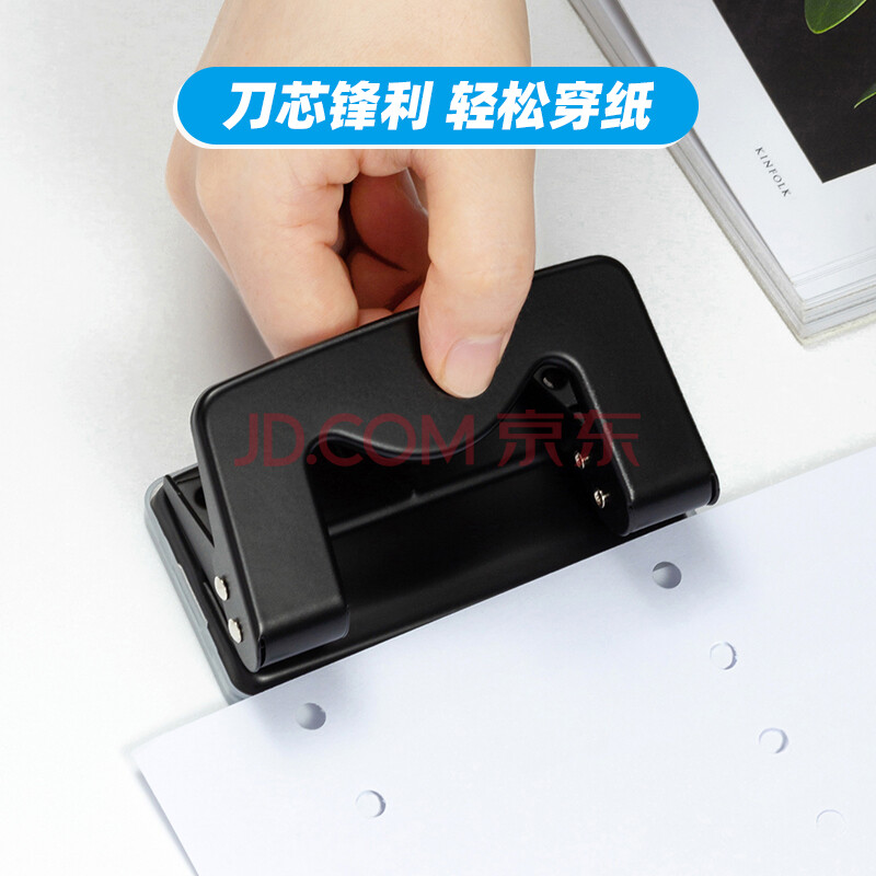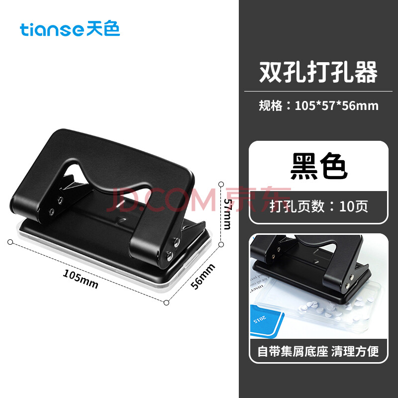 商品相册:天色 小号双孔打孔器打孔机装订活页本带标尺 办公文具 可打10页(孔径6mm/孔距80mm) TS-1007 黑色第