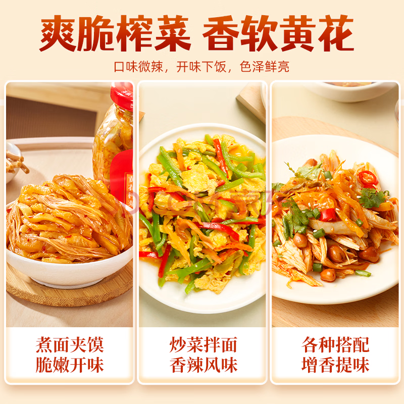 商品相册:乌江榨菜 下饭菜 佐餐拌饭 黄花什锦300g瓶装 下饭小菜轻盐咸菜第
