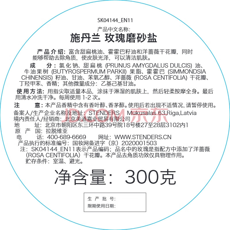 商品相册:施丹兰(STENDERS)玫瑰磨砂盐300g 身体磨砂膏白皙磨砂浴盐 男女友生日礼物第1张/共6