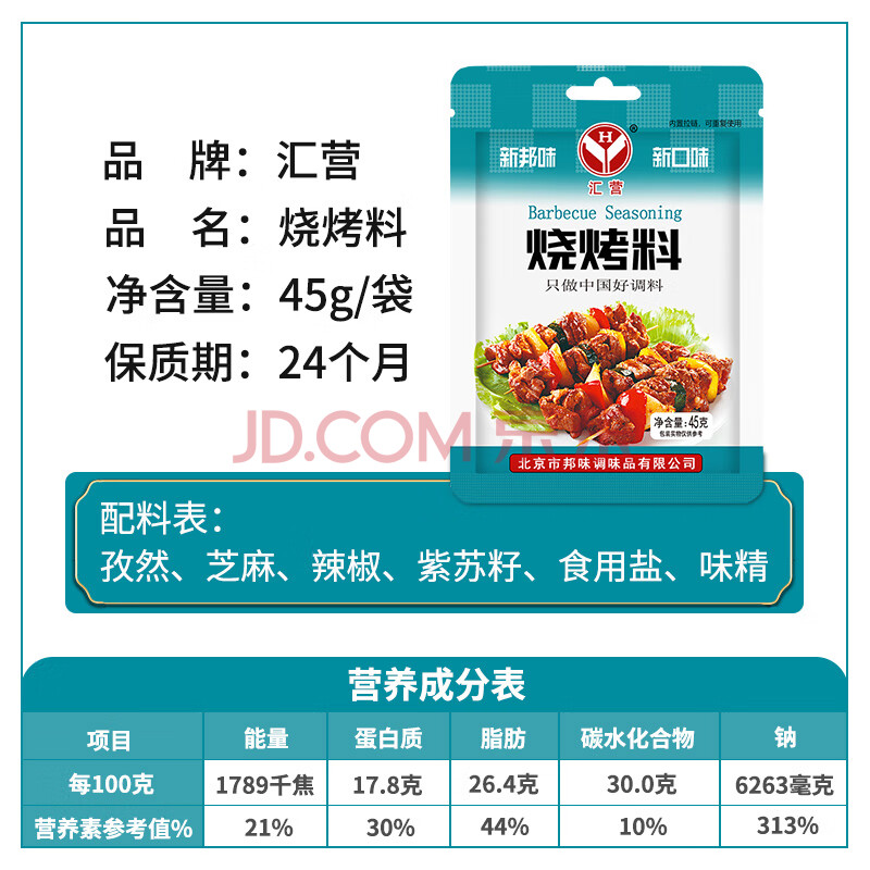 商品相册:汇营烧烤撒料45g 烧烤调料腌料烤肉蘸料孜然粉辣椒粉白芝麻混合调味第