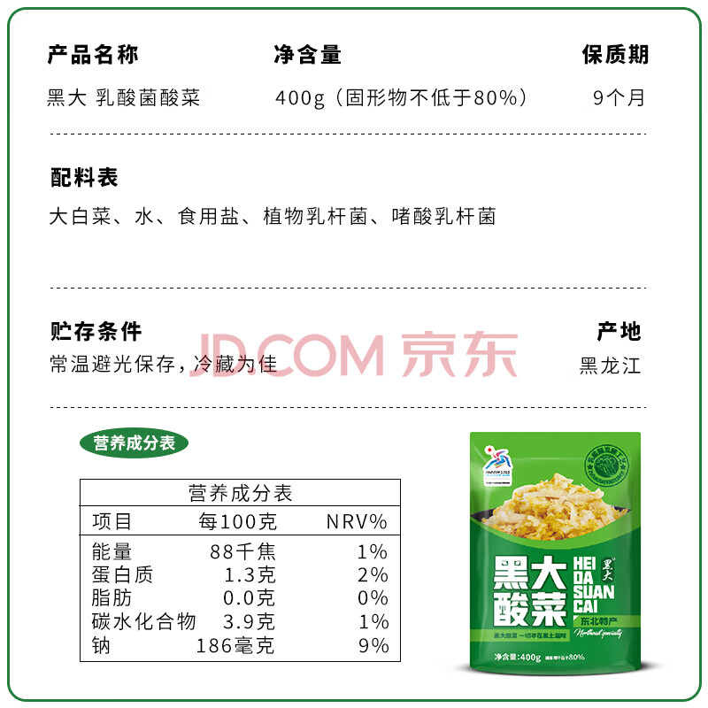 商品相册:黑大 东北酸菜 乳酸菌发酵酸菜丝400g 酸白菜 0化学防腐剂第