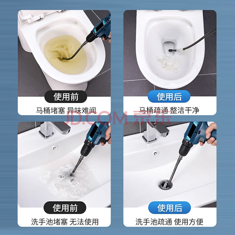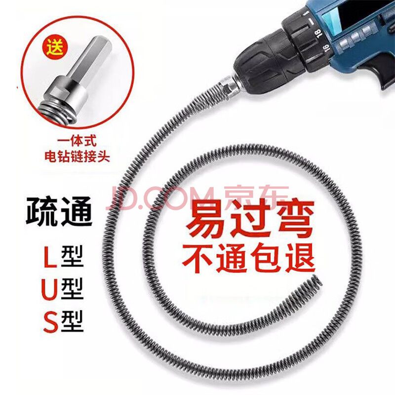 商品相册:乐喏 电钻管道疏通器通下水道清洁弹簧电动疏通下水道工具长3米弹簧第