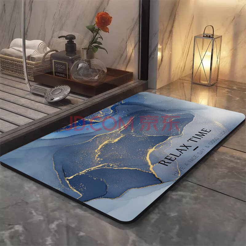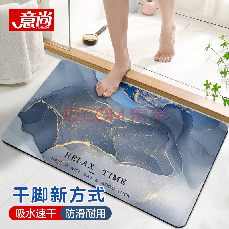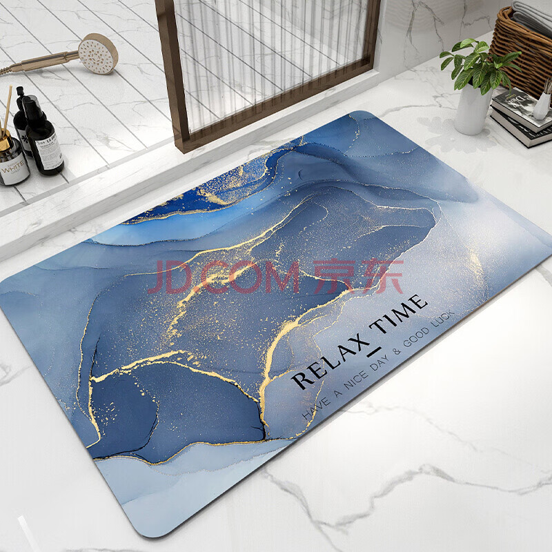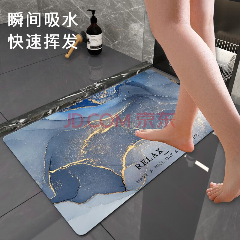 商品相册:意尚家用浴室地垫 吸水防滑速干卫生间地垫门口脚垫大理石宝蓝60*90cm第