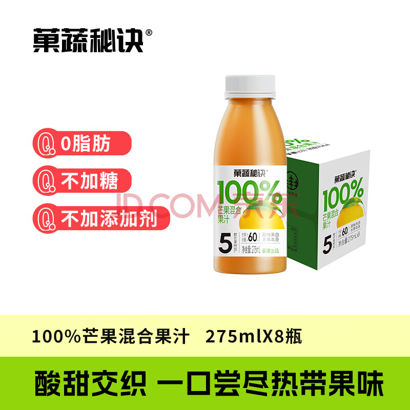 商品相册:乐源菓蔬秘诀100%混合果汁芒果汁饮料聚餐出游275ml*8瓶整箱饮品第