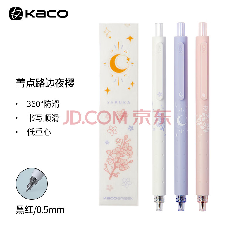 商品相册:【开学必备】KACO文采按动笔 中性笔手账做标记笔 学生用水笔签字笔 夜樱 3支装(05黑芯*2+05粉芯*1+贴纸*1)第