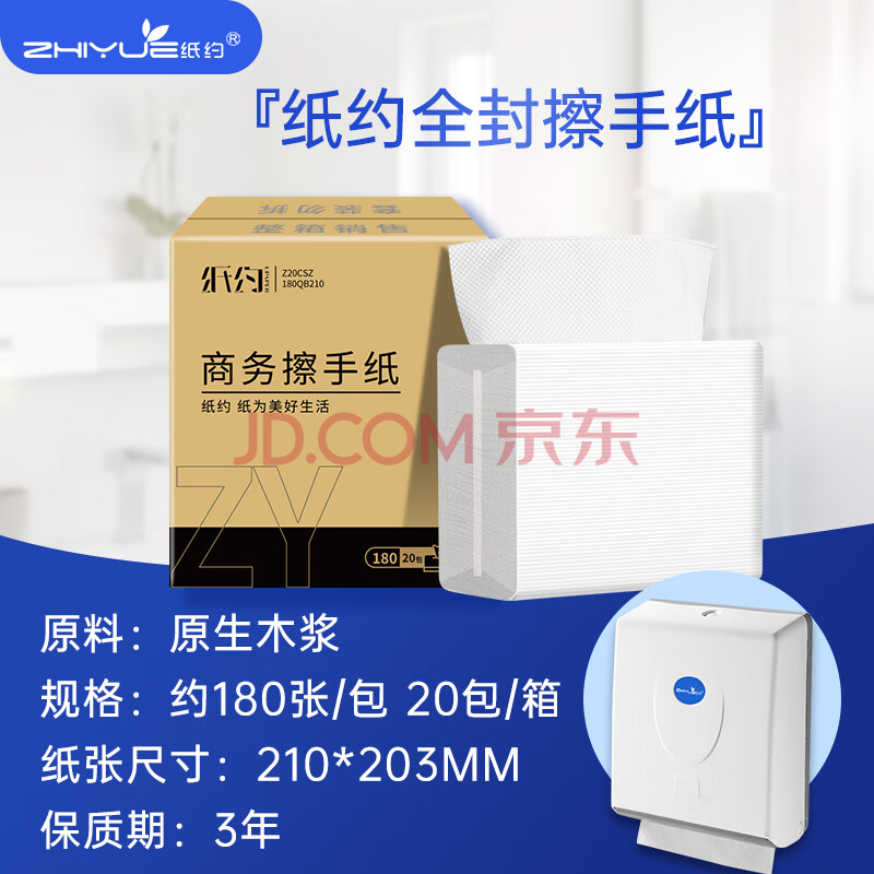 商品相册:纸约擦手纸单层180抽*20包全封抽纸巾厨房厕所干手纸商用抹手纸整箱第
