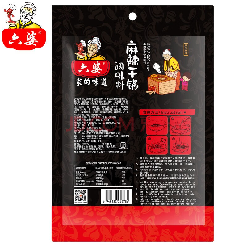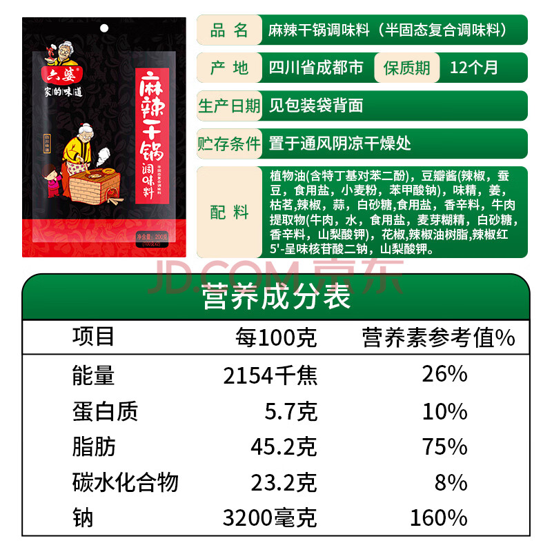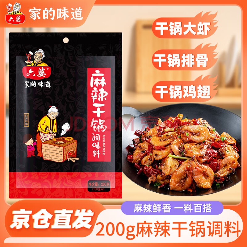 商品相册:六婆麻辣干锅调料200g袋装香锅酱香炒菜家用四川干锅火锅底料3-4人份第