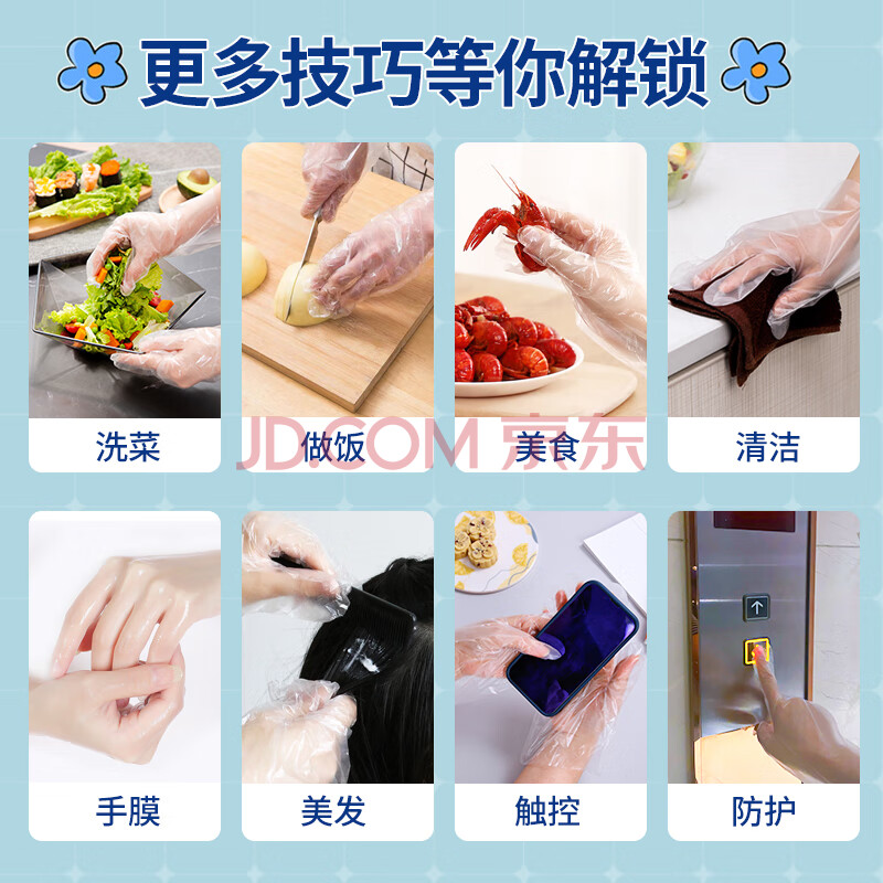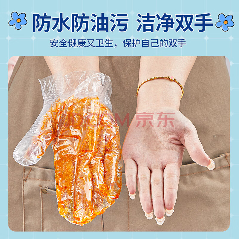 商品相册:SHUANG YU一次性手套500只食品级手套防漏PE卫生手套加厚塑料透明手套第1张/共8