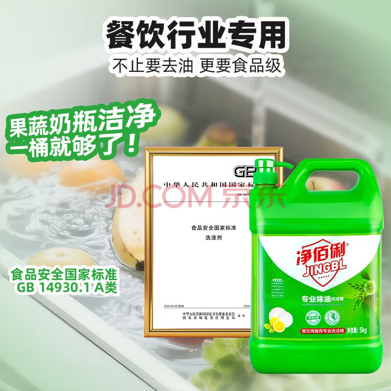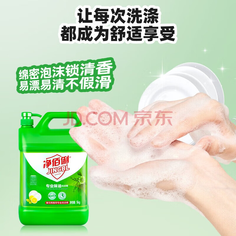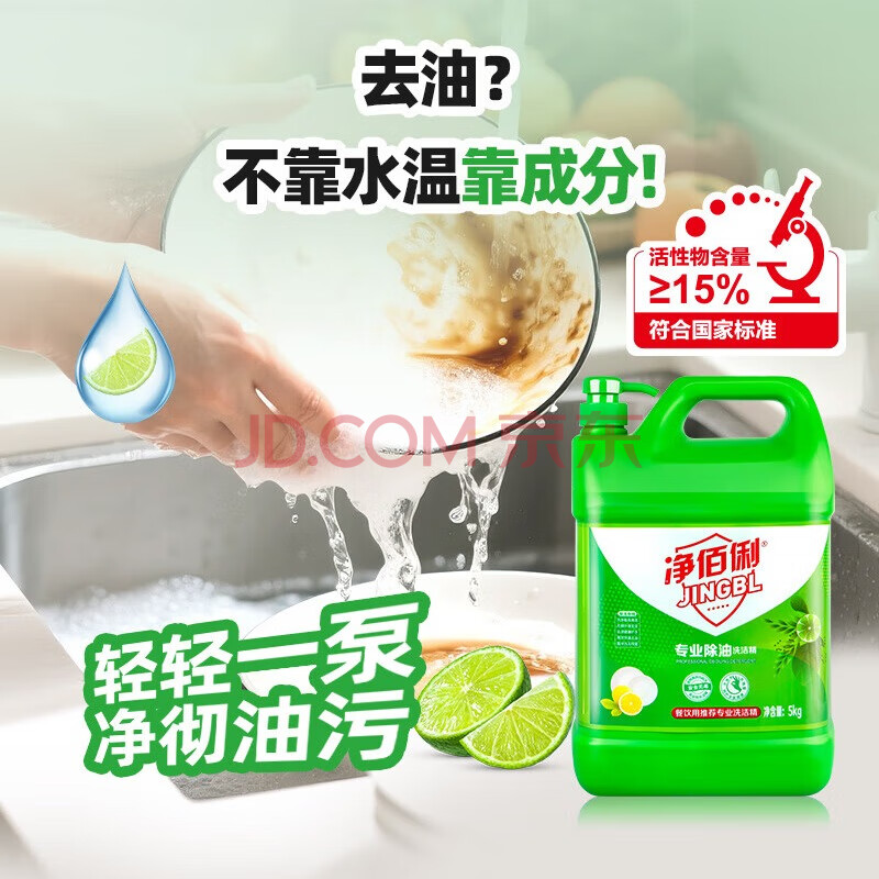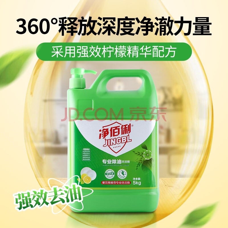 商品相册:净佰俐洗洁精大桶5kg泵头装柠檬精华去油果蔬清洗剂餐具食品家用洗涤灵第