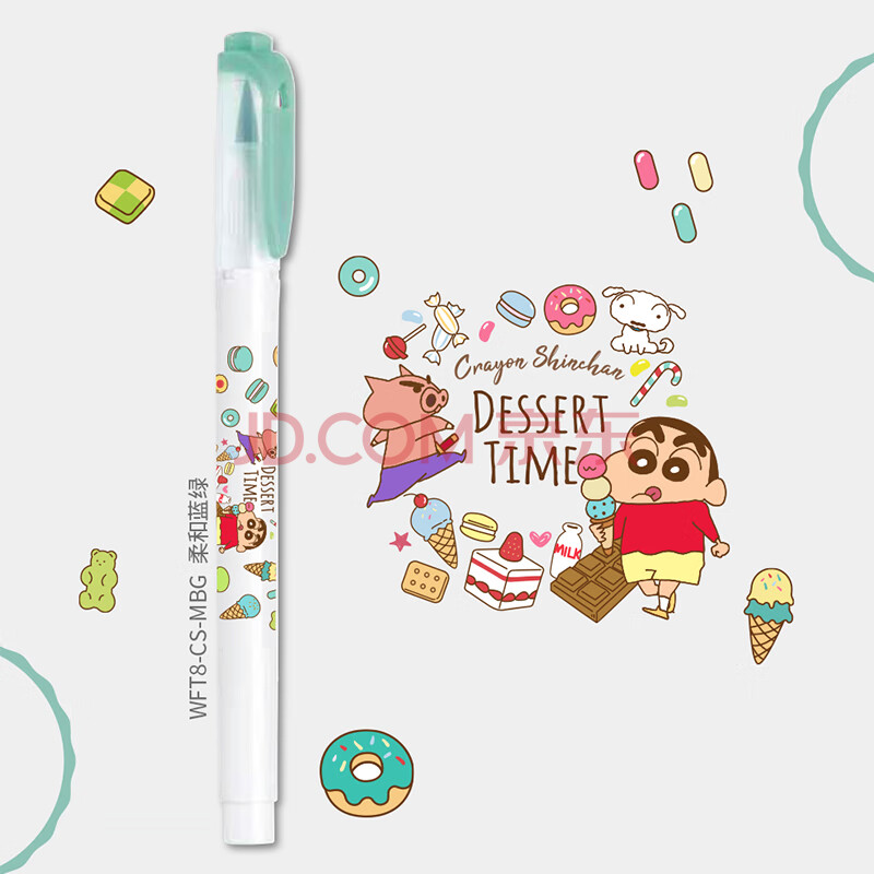 商品相册:斑马牌(ZEBRA)蜡笔小新限定系列双头荧光笔 彩虹色手账笔 学生重点划线笔标记笔 WFT8-CS 柔和蓝绿第
