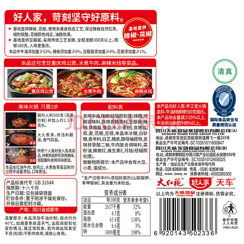 商品相册:好人家手工牛油老火锅底料500g麻辣【减盐≥25%】冒菜麻辣烫方便调料第