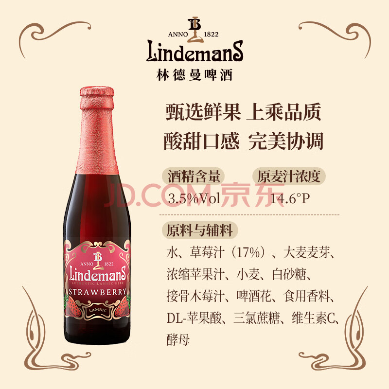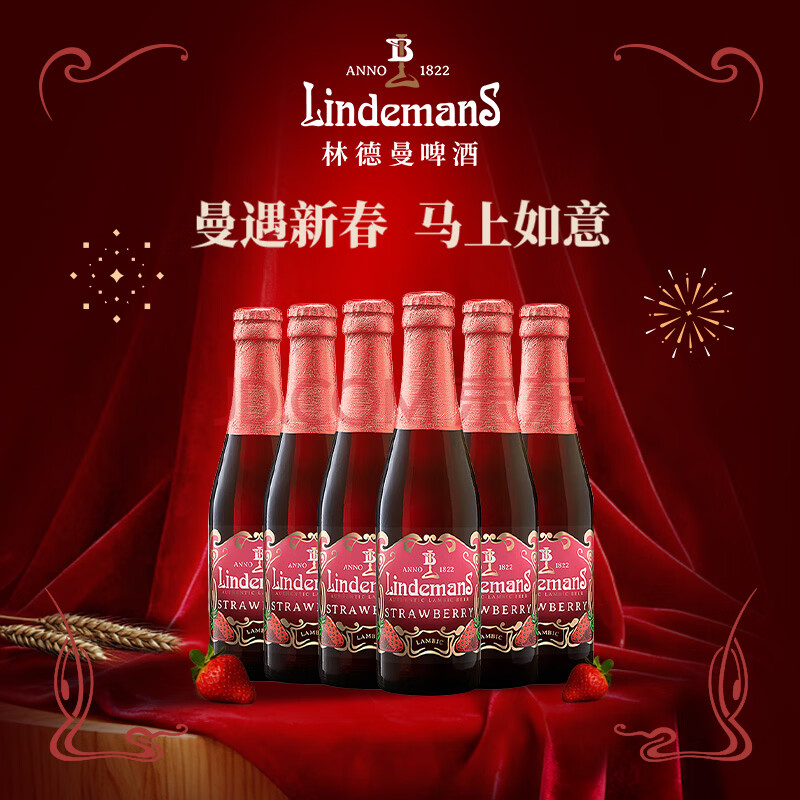 商品相册:Lindemans林德曼草莓啤酒250ml*6瓶 比利时进口 果味精酿 京东自营踏春送礼第