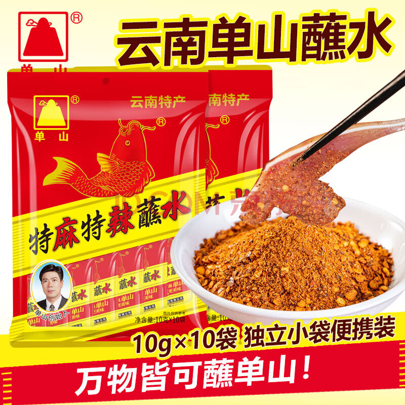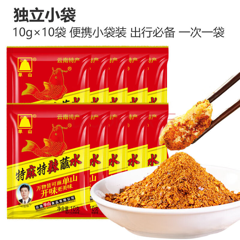 商品相册:单山 蘸水特麻特辣10g*10袋云南特产辣椒面火锅烧烤干碟蘸料沾水小袋第