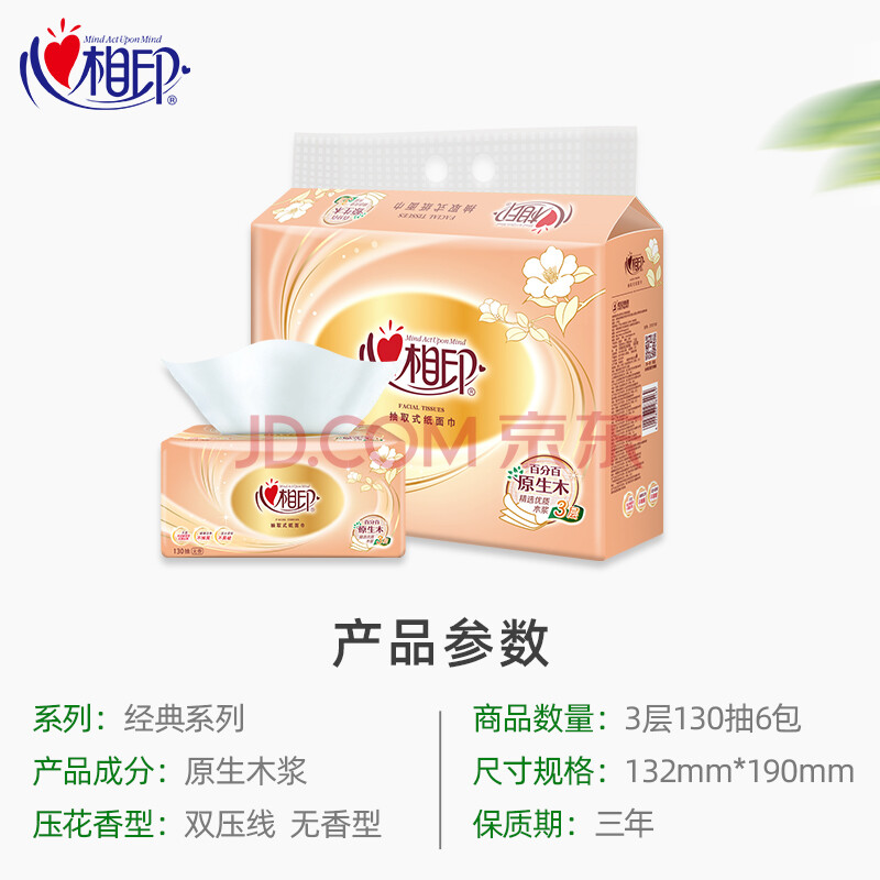 商品相册:心相印抽纸 金装经典系列130抽/包10提装共60包第