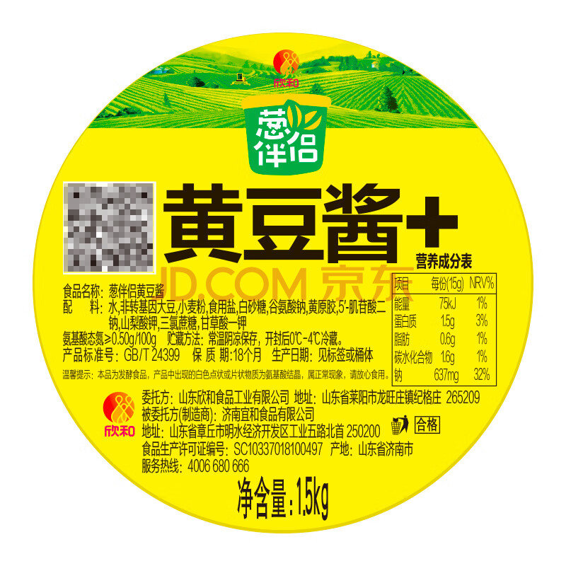 商品相册:葱伴侣黄豆酱1.5kg拌面酱 调味品 干锅酱 炸酱面 六月香 欣和出品第