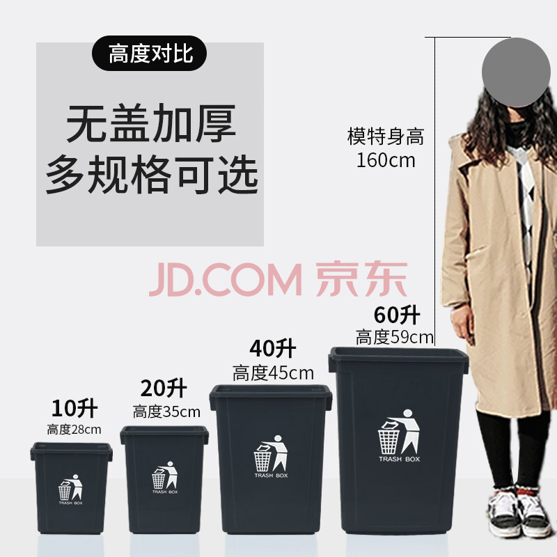 商品相册:朴厨(PUCHU)无盖垃圾桶60L商用大号环卫家用厨房专用大容量饭店室外垃圾箱第