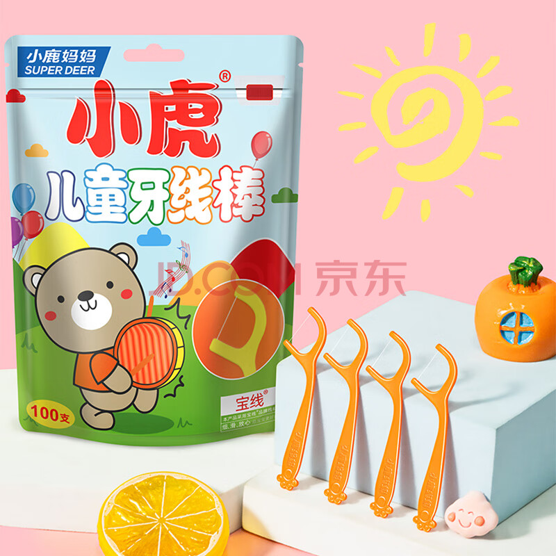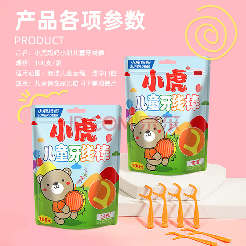 商品相册:小鹿妈妈宝宝儿童牙线牙齿牙缝牙线棒清洁小虎牙签3袋300支随身盒方便携带第