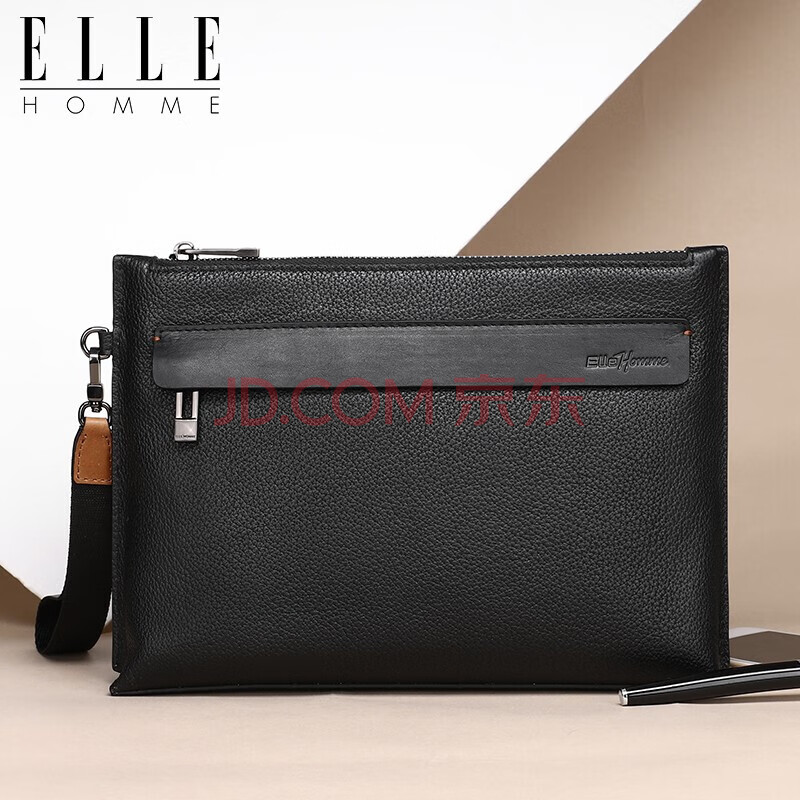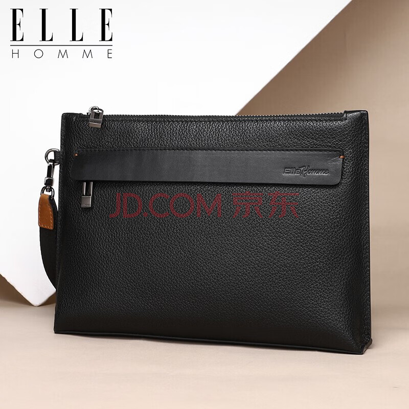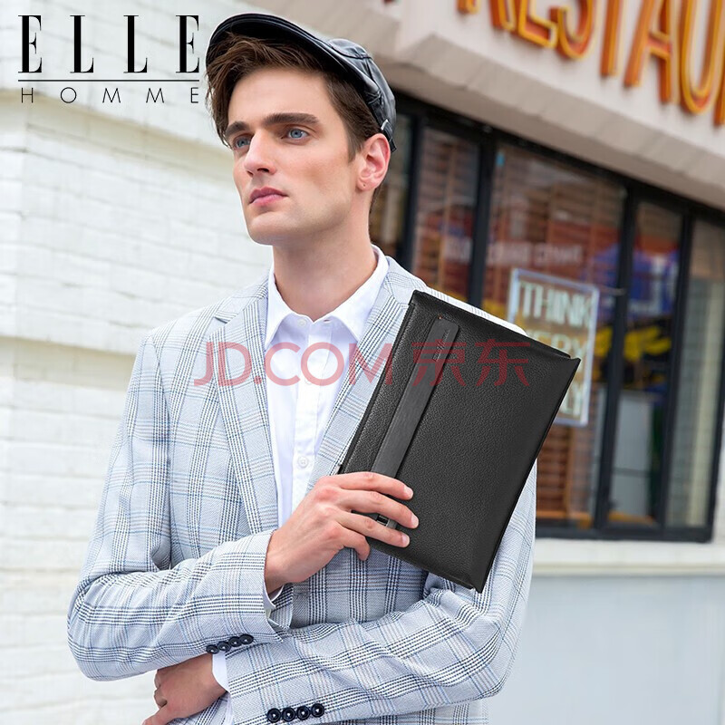 商品相册:ELLE HOMME商务男士手包柔软头层牛皮信封包 大容量多隔层手拿包EB084800101黑色 生日礼物送男友第