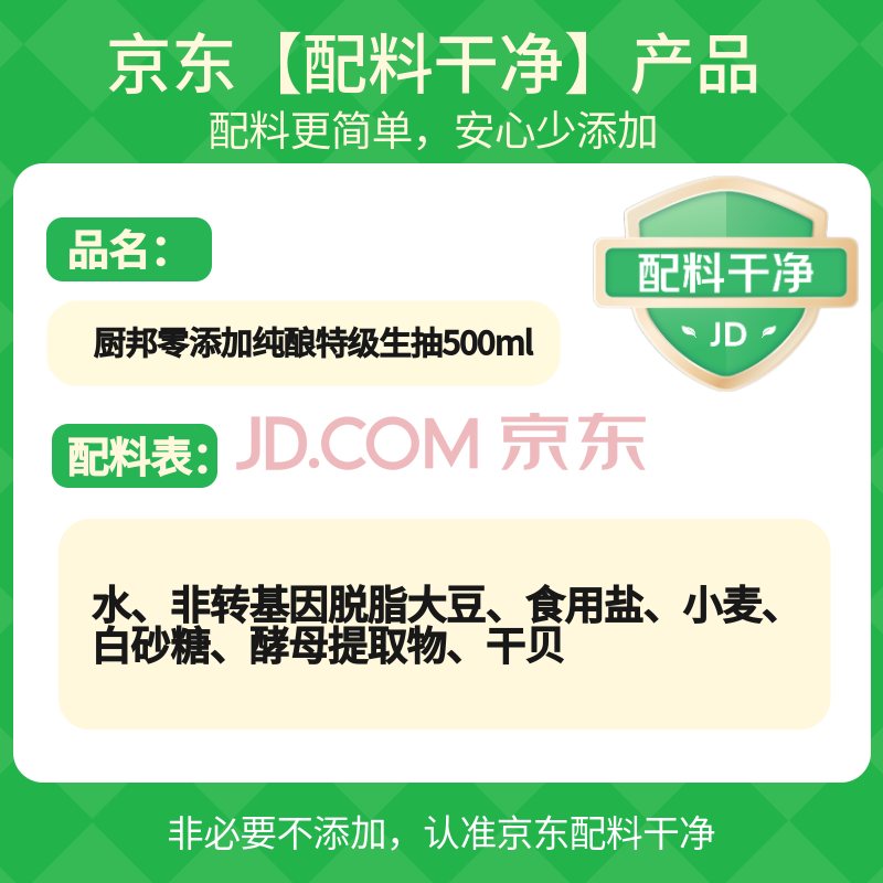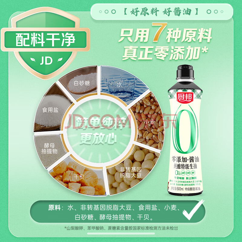 商品相册:厨邦酱油 纯酿系列 生抽 特级酱油【配料干净】500ml 点蘸蒸煮提鲜第