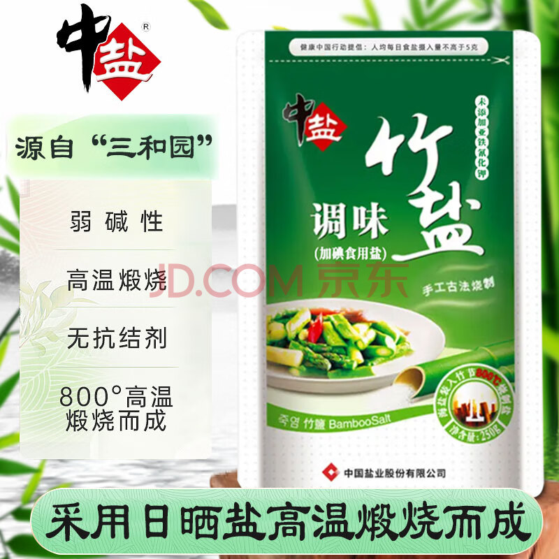 商品相册:中盐 调味竹盐250g【加碘】高温煅烧 非遗工艺 味道鲜香 健康弱碱性盐第