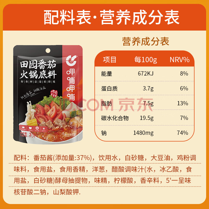 商品相册:呷哺呷哺 田园番茄火锅底料 麻辣烫冒菜调味料 番茄味火锅食材180g第