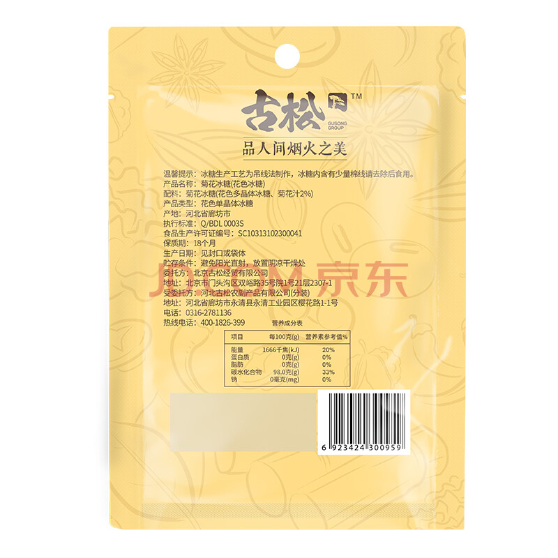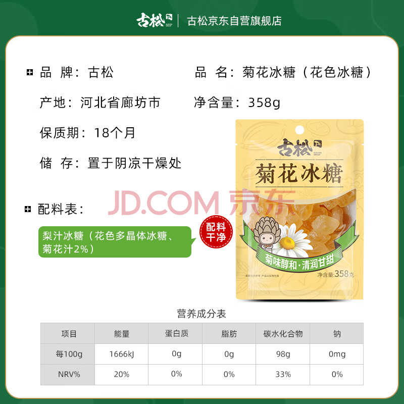 商品相册:古松 黄冰糖 菊花冰糖358g 冲饮调味小粒糖 二十年品牌第