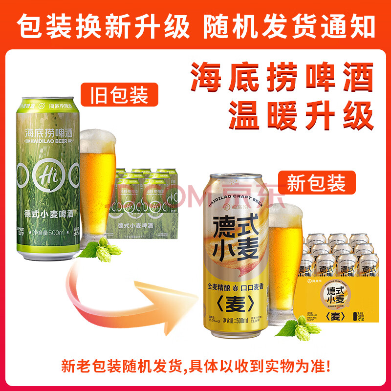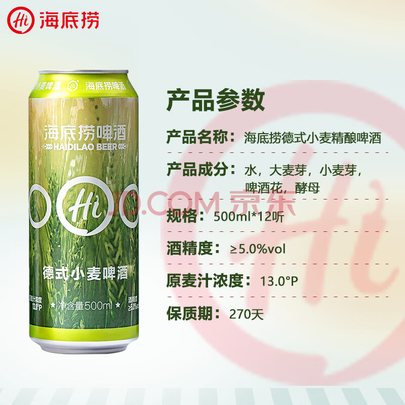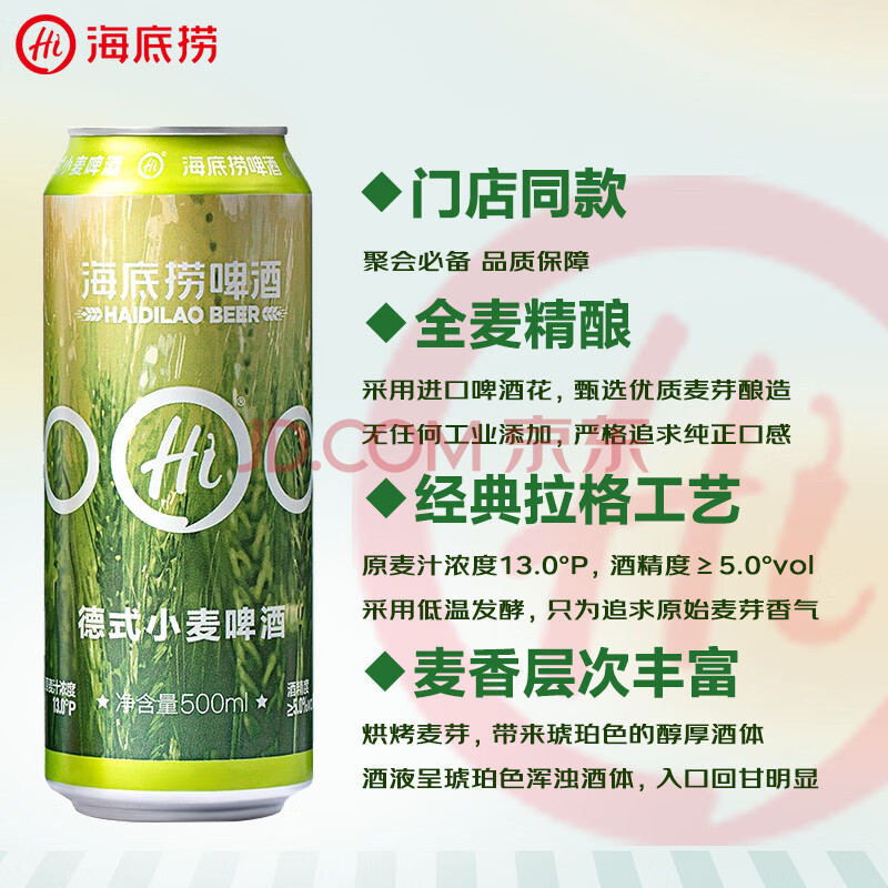 商品相册:海底捞13度德式小麦啤酒精酿500ml*12听 整箱装国产 门店同款 聚餐送礼第
