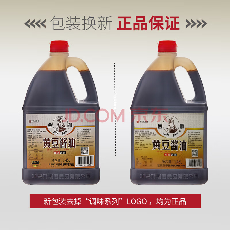 商品相册:六必居 金狮 黄豆酱油【生抽酱油】1.45L 酿造酱油 中华老字号第