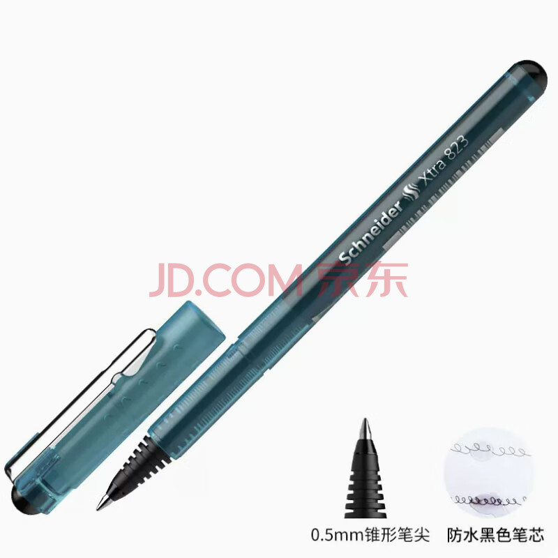 商品相册:施耐德(Schneider)针管中性笔 0.5mm黑芯顺滑签字笔大容量直液式水笔学生开学必备用品 823单支装-透明蓝 182303第